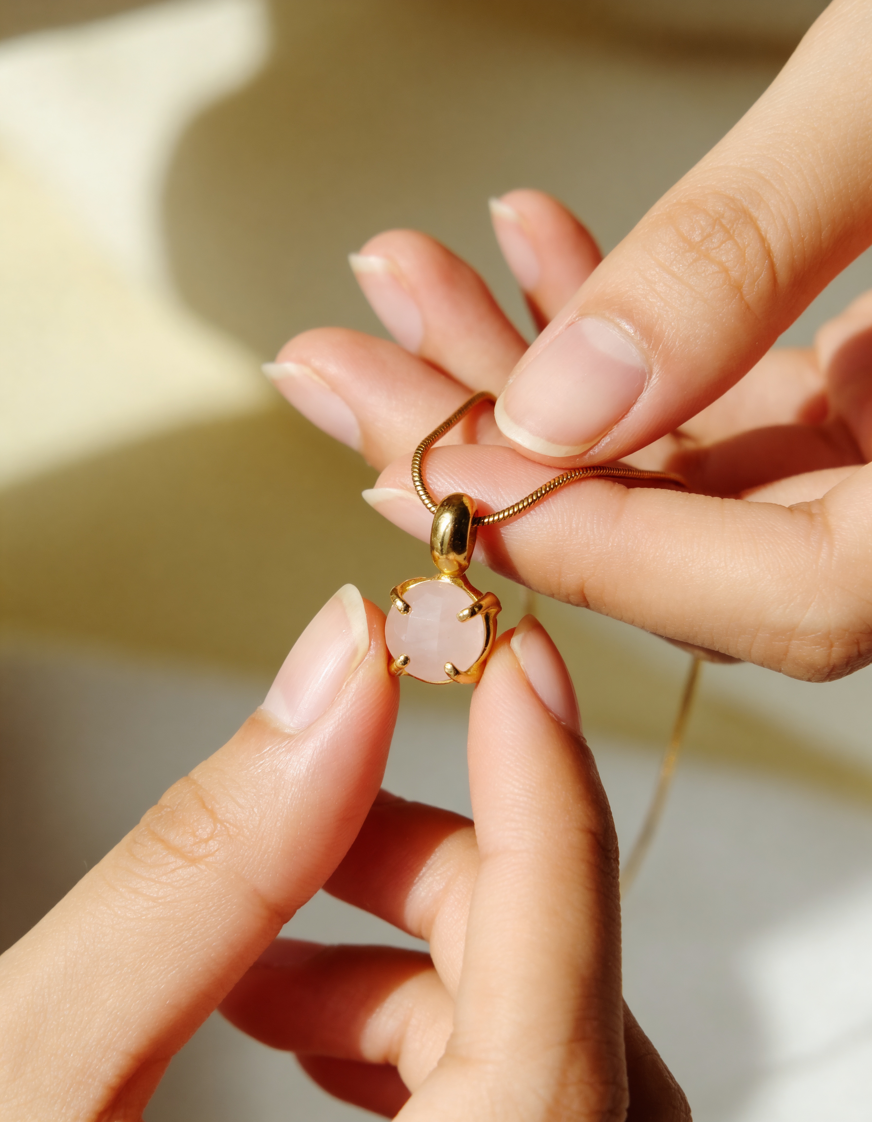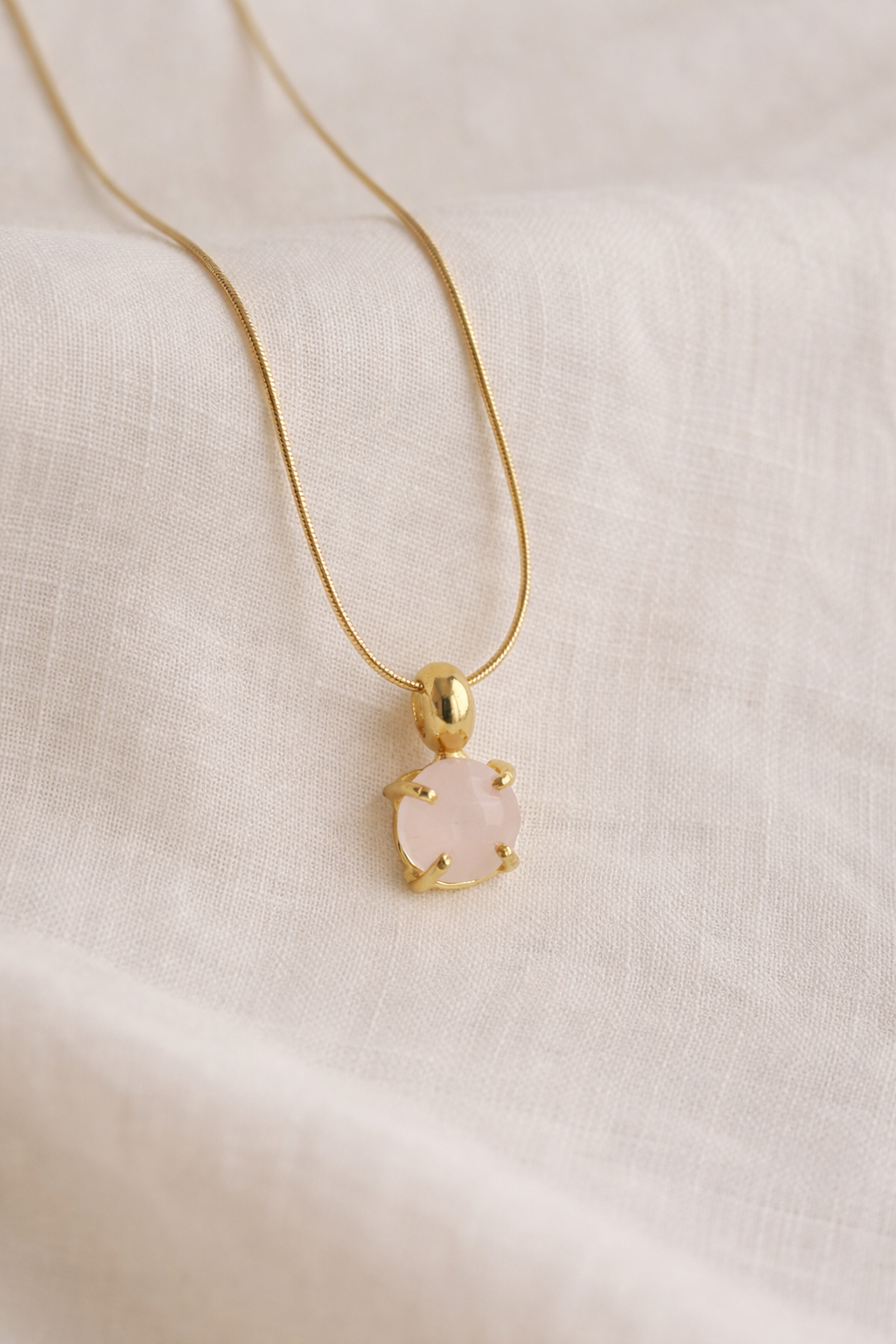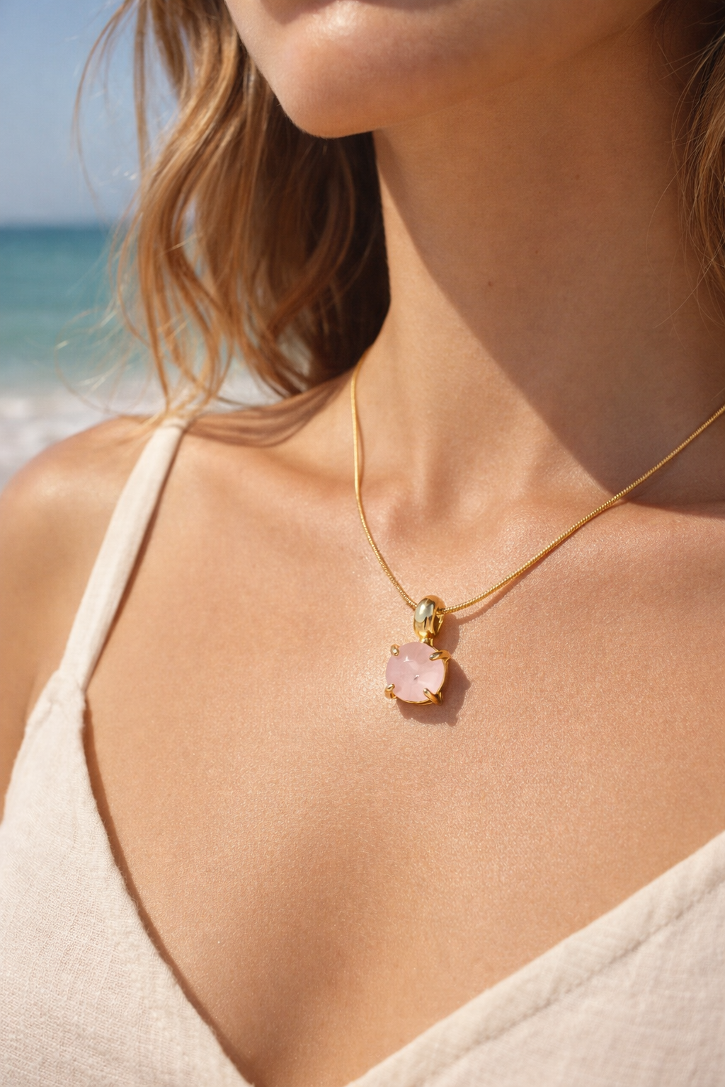 Soft, feminine, and timeless — this 18K gold plated Rose Quartz pendant necklace adds a gentle glow of elegance to everyday styling.
