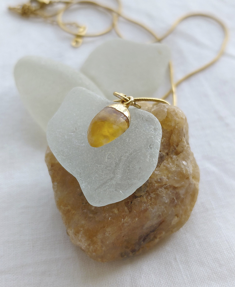 Be the first to review “Natural Sea Glass Necklace with Citrine – 18K Gold Plated”